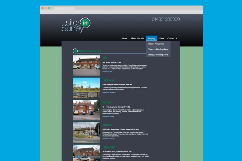 Sites in Surrey markets properties on offer in the Surrey Police Authority asset realisation programme: